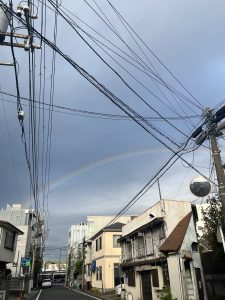 まだ寒くなる前の頃ですが、出勤中の朝に綺麗な虹がかかってたので、撮ってみました。