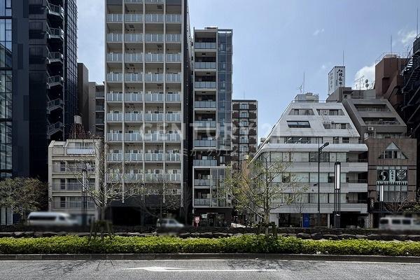 眺望や陽当たりは部屋位置的に高評価、新虎通りの向かい側から撮影のメイン外観写真で開放感が伝わるはずです。