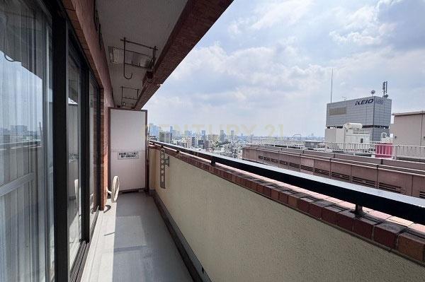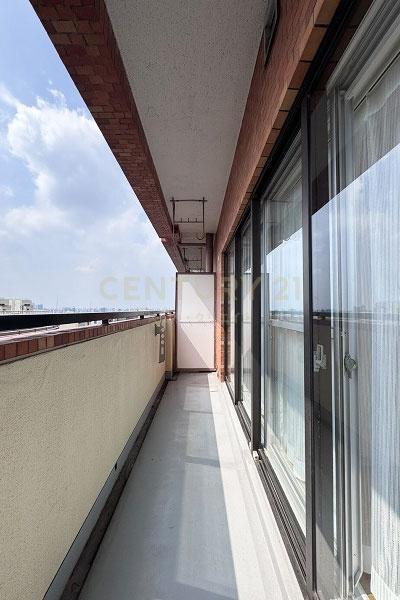 お部屋は14階建て/12階部分の南西向きバルコニー、南西側には建物があるものの12階部分は抜けがあり、陽当たりと眺望は共に高評価です。