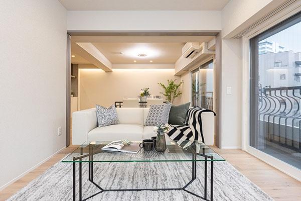 山手線の恵比寿駅に近い、恵比寿プライムスクエア隣り(恵比寿駅側)の重厚な煉瓦調タイル貼り外観のヴィンテージマンション、室内は新規リノベーション済みです。