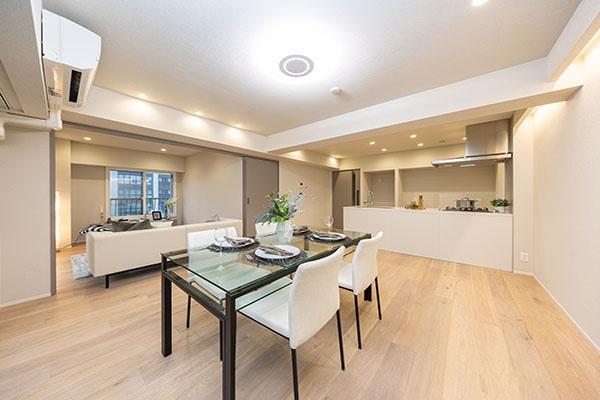 ウォークインクローゼット クローゼット シューズインクローゼット 収納スペース バルコニー バルコニー有 角部屋 TVインターホン 日当り良好 電気 2沿線以上利用可 平坦地 都市近郊 市街地が近い 部屋向き 南西向き 採光面 3面採光 通風良好 全居室フローリング ダウンライト 独立洗面台 リフォーム 内装リフォーム済 リノベーション済 フローリング張替 スーパー 徒歩10分以内 小学校 徒歩10分以内 フローリング 床暖房 システムキッチン ガスコンロ コンロ口数 三口 浴室乾燥機 室内洗濯機置場