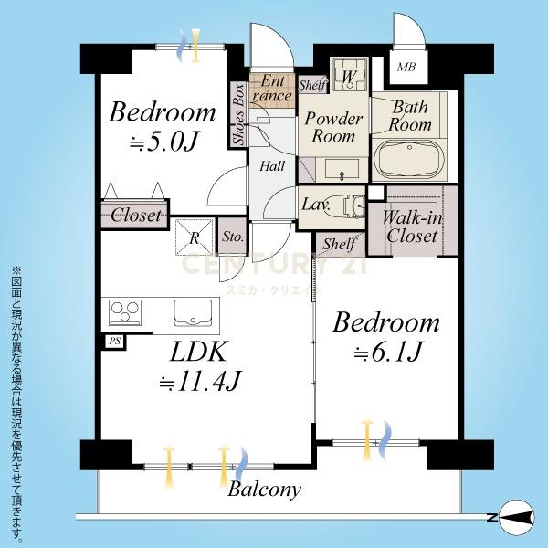 2LDKの間取りは1か所大型収納有り、やや可変性有り、ただ二部屋を使う場合にはLDKサイズが唯一気になる部分です。