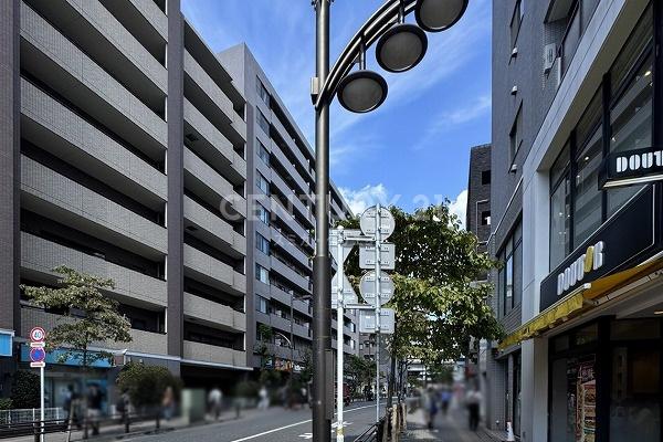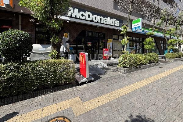 明大前駅歩1分の明大通り沿い、1階部分にマクドナルドとファミリーマートが入るブラウン系色タイル貼り1997年築の建物で向かいにはスターバックスや交番、駅前立地の利便性は最高評価です。