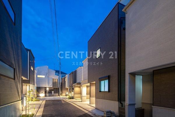 第1期販売の二階建てと違い全棟三階建てで建物ボリュームを確保、設備仕様や室内については完成済みの第1期を実際に確認可能です。