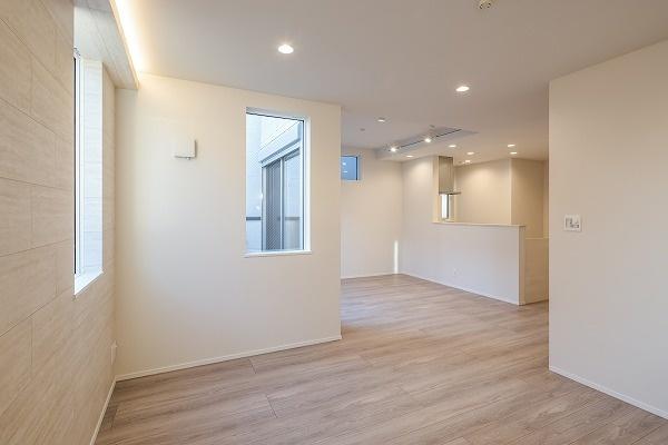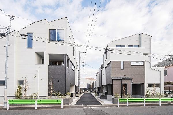 第1期販売の二階建てと違い全棟三階建てで建物ボリュームを確保、設備仕様や室内については完成済みの第1期を実際に確認可能です。