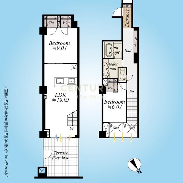 2LDKの間取りはメゾネットタイプ、B1階テラス面がLDK、陽当たりはテラス越し程度、眺望評価は低いです。収納量が多いのは魅力です。