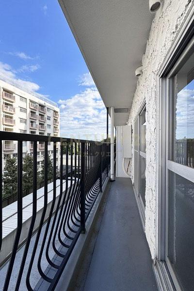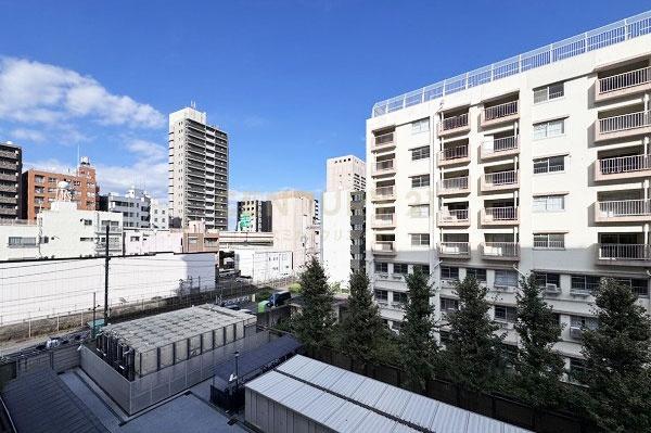 お部屋は10階建て/4階部分の北東向きバルコニー、全部屋バルコニー面ですが方位で陽当たりは標準評価、部屋位置的にURの建物が視界に入る眺望評価は下げています。
