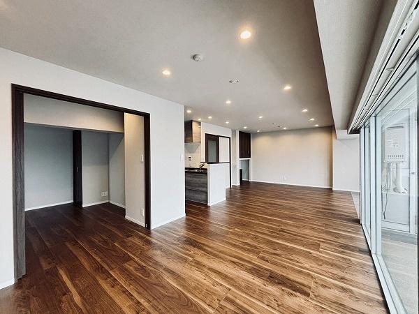 高層階のバルコニー方向は開放的、陽当たりと眺望は最高評価を迷います。