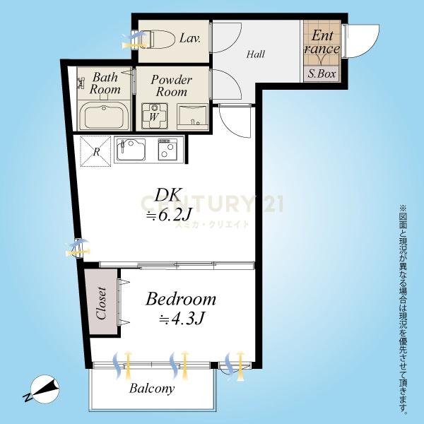 1DKの間取りはつなげて広い一体空間利用可能な可変性有りです。