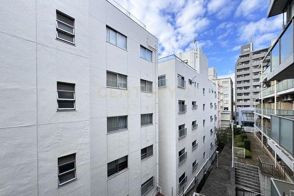 実際に室内側は工事中で未確認ですが、南西側には別マンションがあります。