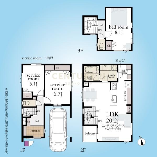 価格差もありますが、建物面積が広いのは三階建てのB号棟、土地面積が広く二階建てを希望するならC号棟です。LDKの広さや広めの主寝室、収納スペースの充実は共通です。