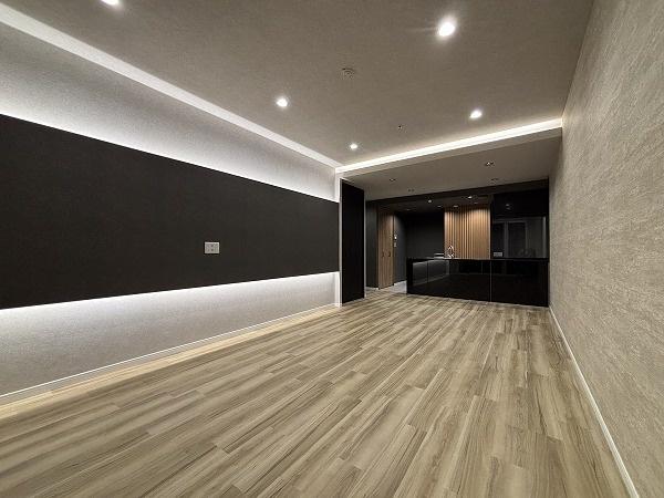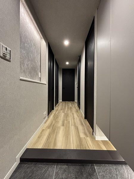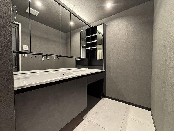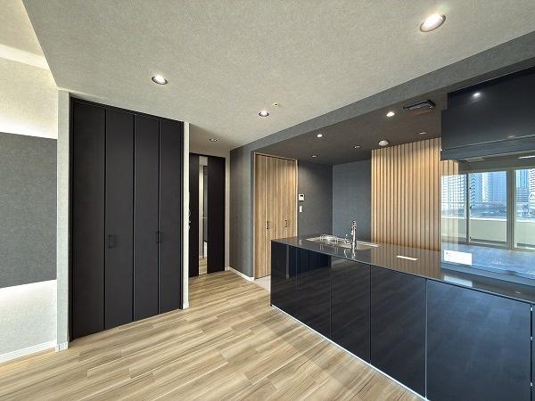 室内は新規リノベーション済み、シックで高級感漂うデザイン性の高い仕上げ、その分は価格帯や価格設定に反映、設備関係は専有部一新に加えて共用部の充実度が高いです。