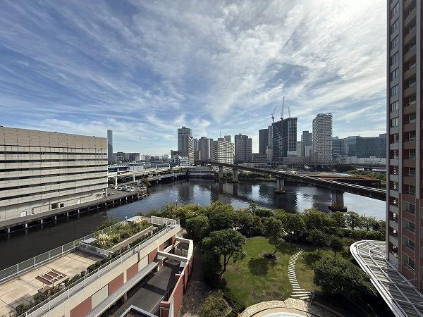 お部屋は48階建て/8階部分の南向き運河ビュー、ワイドスパンバルコニーに全部屋面の陽当たりや眺望は高評価です。