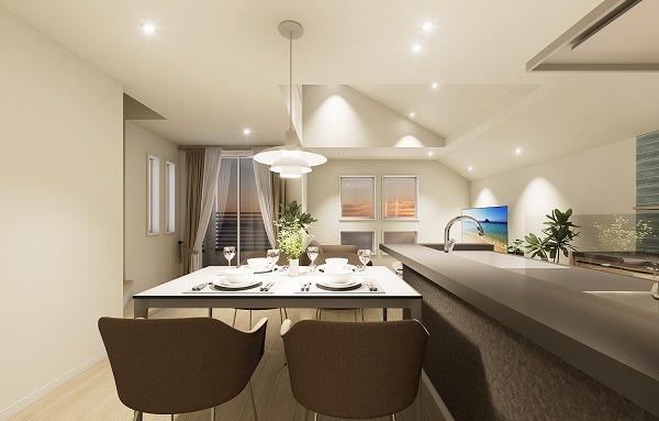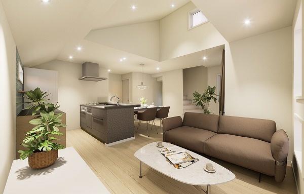 価格は相場標準設定、接道間口や外観ファサードデザインの影響で土地面積に比べ大サイズに見えます。