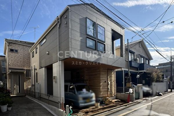 建物は完成目前、二階建て3LDK車庫付きかつロフト付き、西側道路面の整形地で北側は隣地アプローチ部分、南側は北側に比べ狭いですが隣地建物の通路部分、三方向開放で全部屋に閉塞感がないのが特徴です。