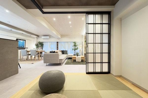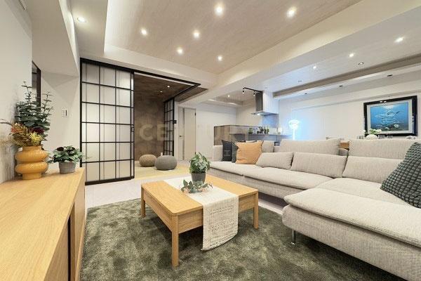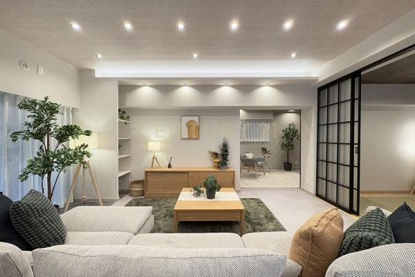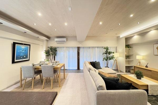 TV付バス クローゼット シューズインクローゼット 収納スペース バルコニー バルコニー有 専用庭 日当り良好 2沿線以上利用可 平坦地 都市近郊 市街地が近い 部屋向き 南向き 採光面 3面採光 通風良好 階下に住戸なし LDK広さ 20帖以上 和室 キッチン床暖房 給湯 独立洗面台 浴室暖房 温水洗浄便座 南面バルコニー 南庭 リフォーム 内装リフォーム済 リノベーション済 フローリング張替 スーパー 徒歩10分以内 総合病院 徒歩10分以内 小学校 徒歩10分以内 入居可能時期 即入居可 フローリング 床暖房 システムキッチン カウンターキッチン 食器洗乾燥機 浄水器 ガスコンロ コンロ口数 三口 追い焚き 浴室乾燥機 室内洗濯機置場