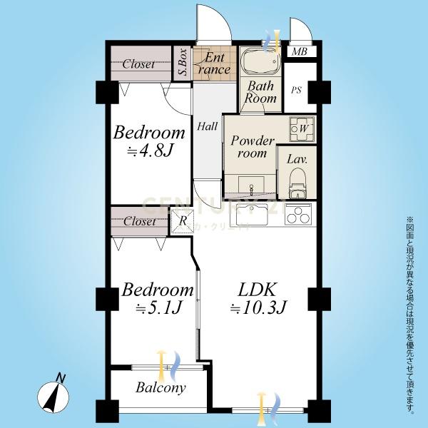 2LDKの間取りはLDKサイズ的にオープンキッチンの選択、専用トランクルーム付設のお部屋になります。