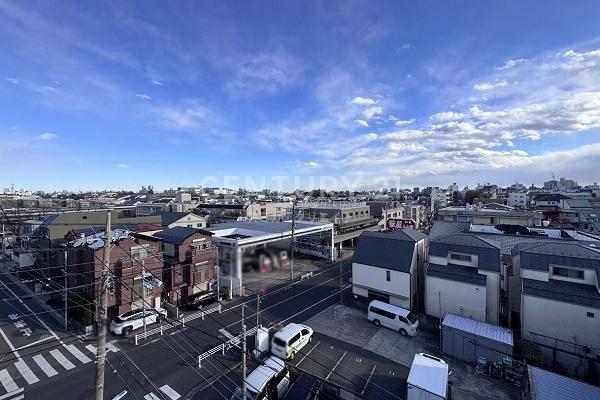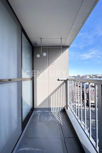 お部屋は7階建て/5階部分の南向き、二枚目の正面外観は南側を撮影、開放感がそれだけで伝わるはず、やや南傾斜の高台立地で陽当たりや眺望は迷わず高評価です。
