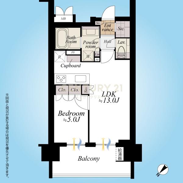 1LDKの間取りはきれいなお部屋の形状と奥行きのあるバルコニー、ほぼデッドスペースのない配置が好印象、ミストサウナやディスポーザー等の装備関係の充実度も高いです。