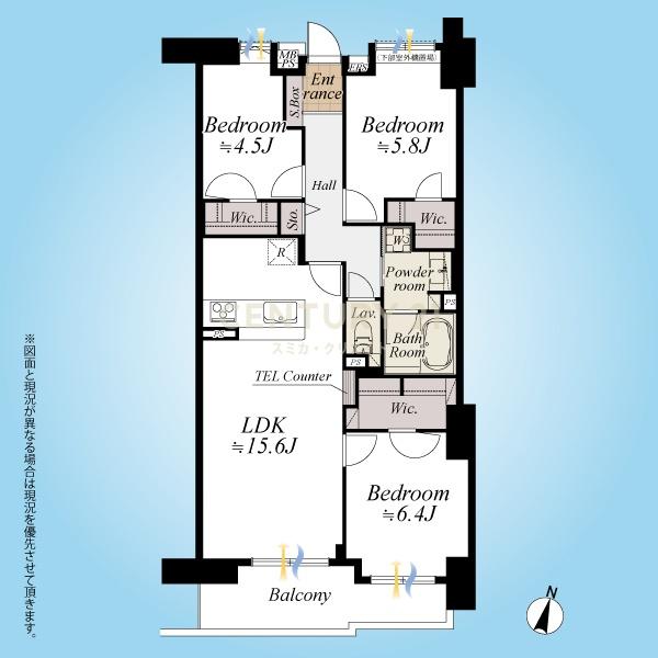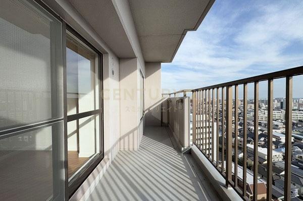お部屋は最上階18階部分でバルコニーが南向き、バルコニー側にLDK+一部屋が面する3LDKタイプ、バルコニー側の陽当たりと眺望は高評価、豊富な収納量も魅力です。