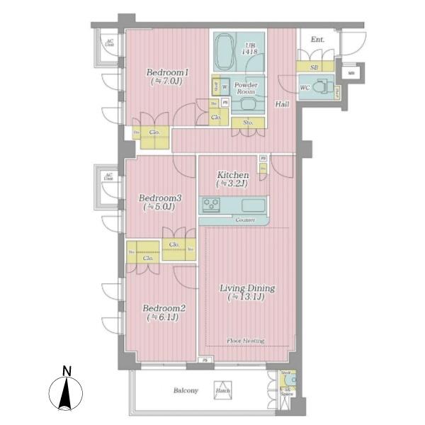 3LDKの間取りは各洋室のサイズバランス、LDKも含めきれいな形状に好印象を持っています。