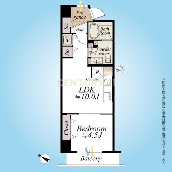 お部屋は12階建て/4階部分で南西側バルコニー面の1LDKタイプ、LDKに光を採り込む場合には居室との間仕切り開放が必要、トイレ洗面化粧室一体型になります。採光面は大きな窓ガラス有りのエントランスもプラス要素です。